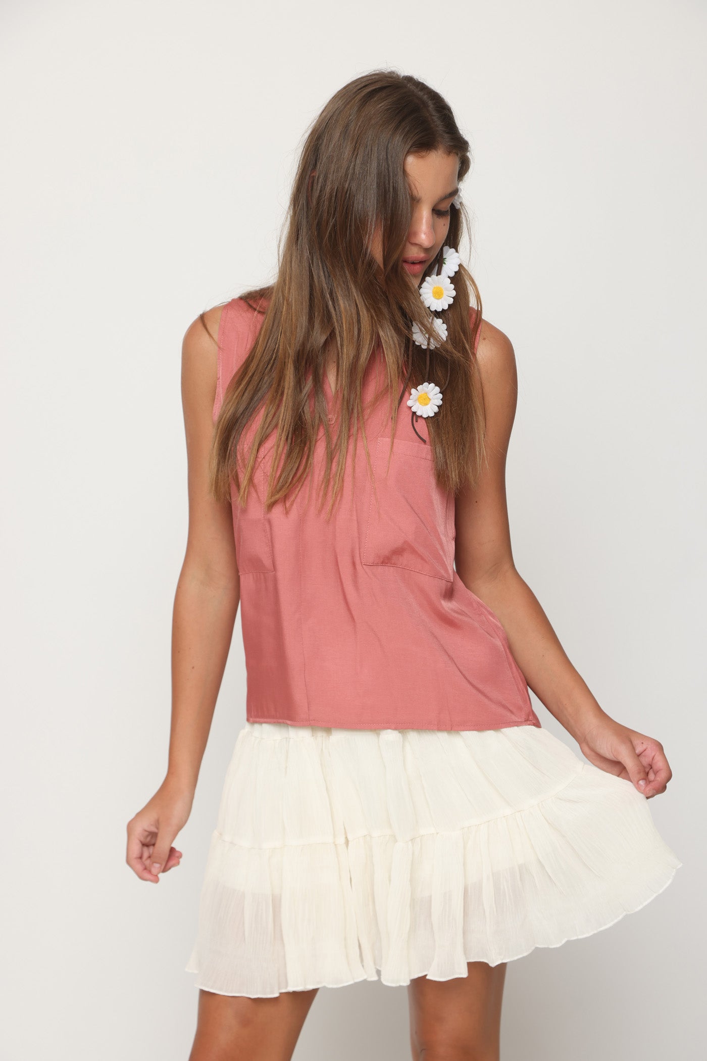 גופיה דקה ונעימה בגזרה ישרה, בשילוב שני כיסים קדמיים וכפתור.