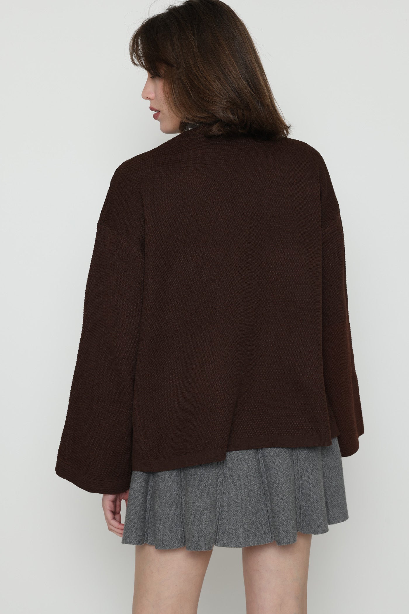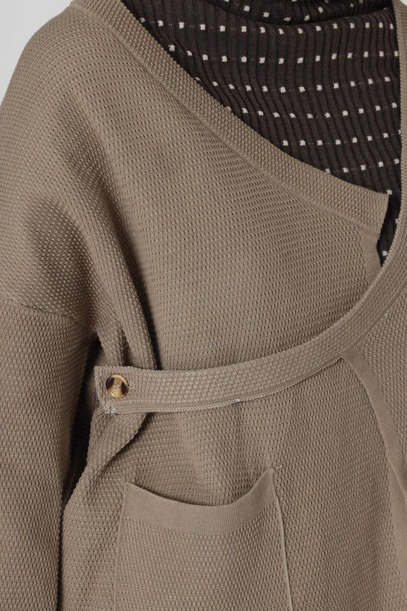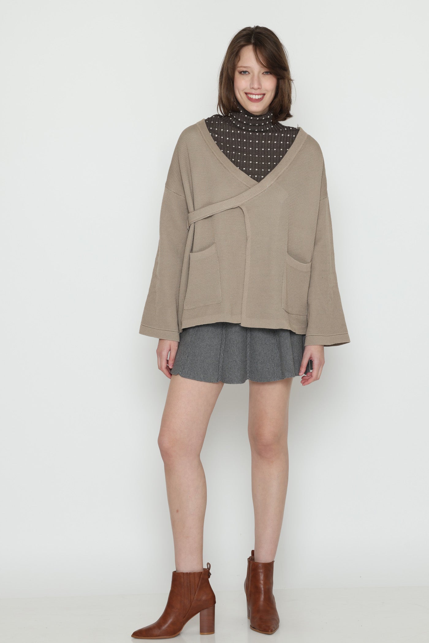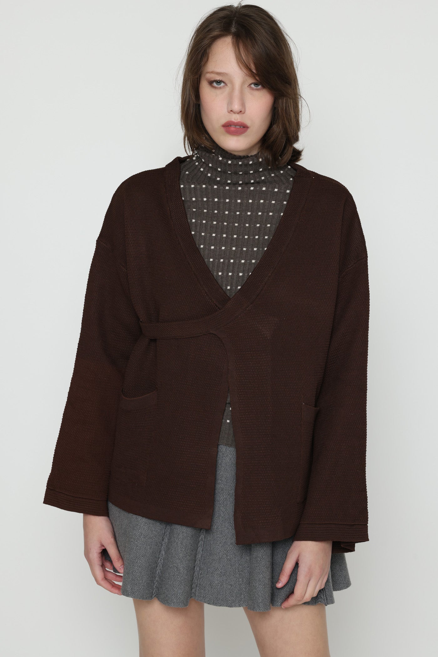 ג'קט עבה ומחמם בגזרת מעטפת, בשילוב כיסים צדיים וסגירת כפתור צידי.
