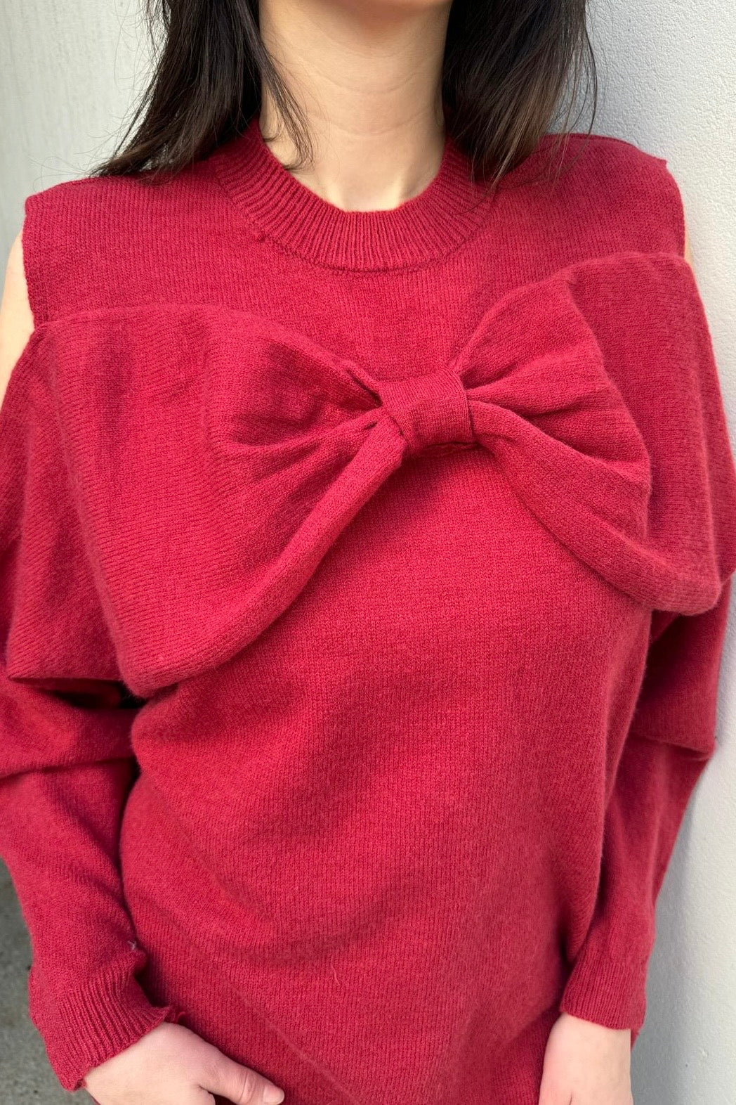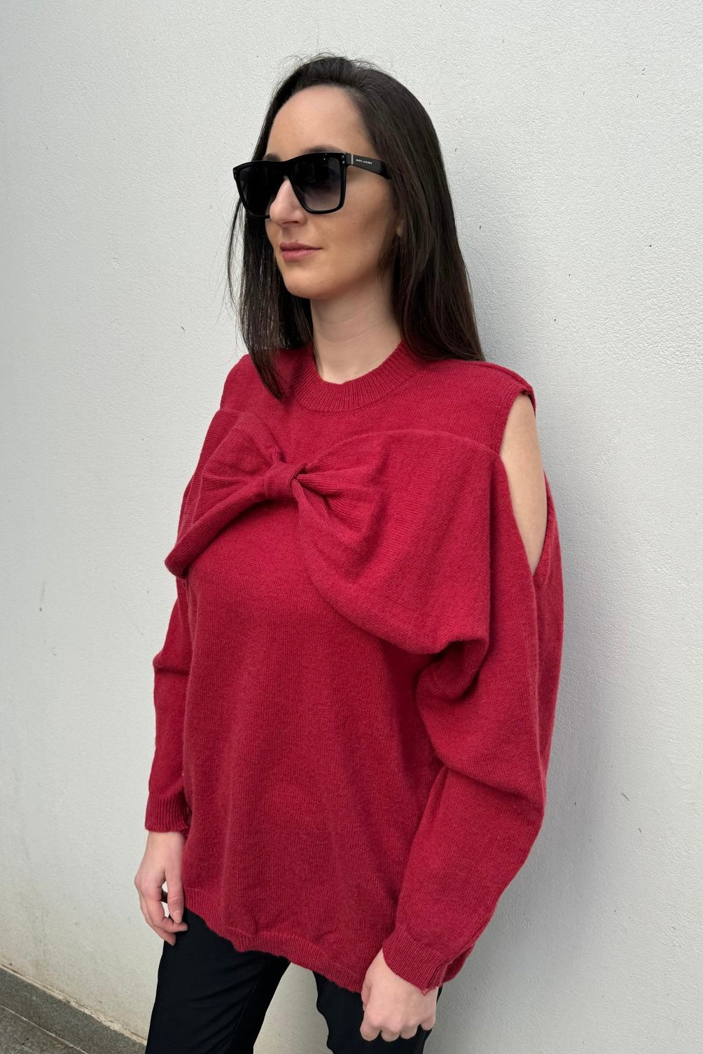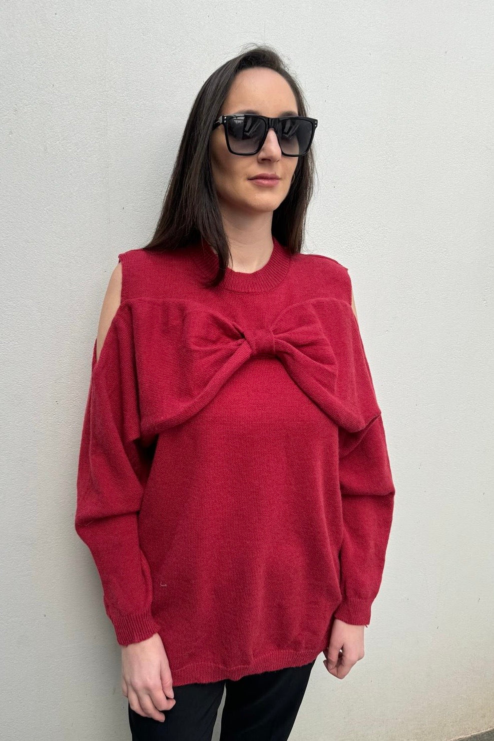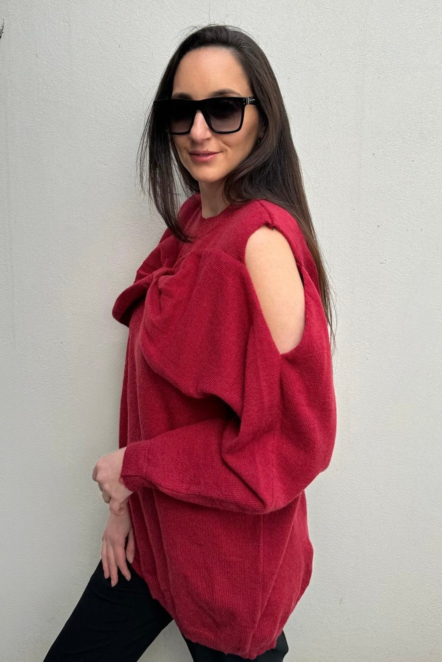 טוניקה עבה ונעימה בגזרה רחבה, עם פתחים בכתפיים ופפיון גדול מרכזי.