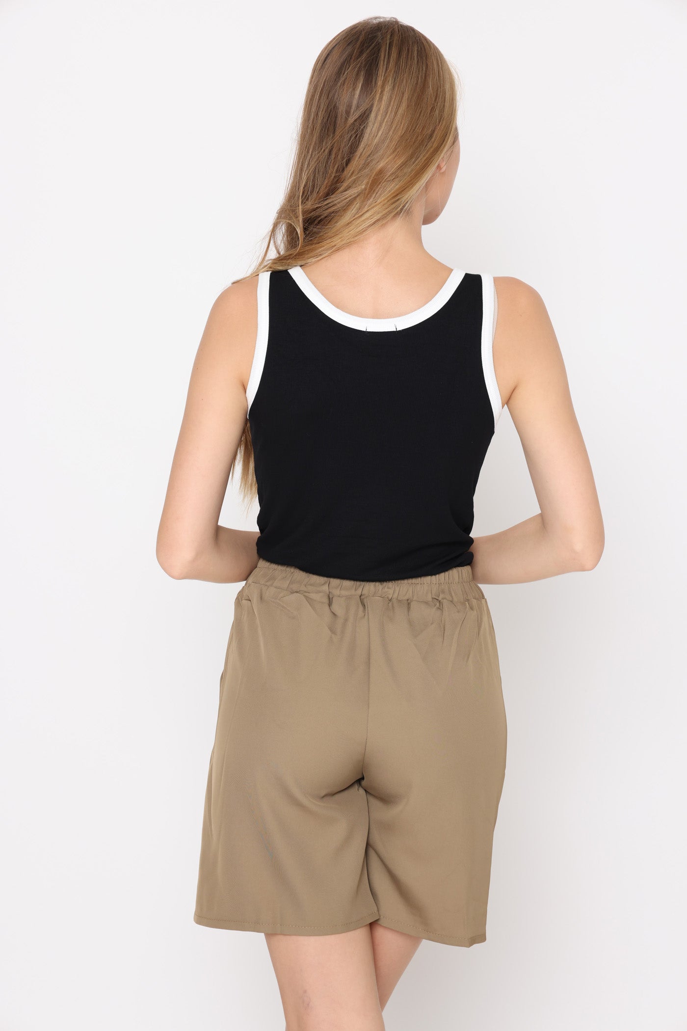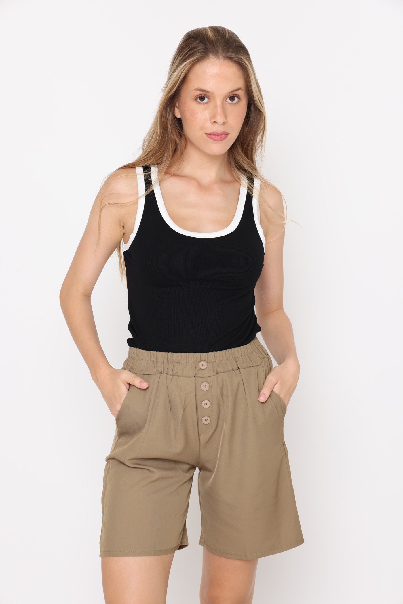 מכנסיים אלסטיים, דקים ונעימים בגזרה ישרה, בשילוב כיסים צדיים וגומי במותניים