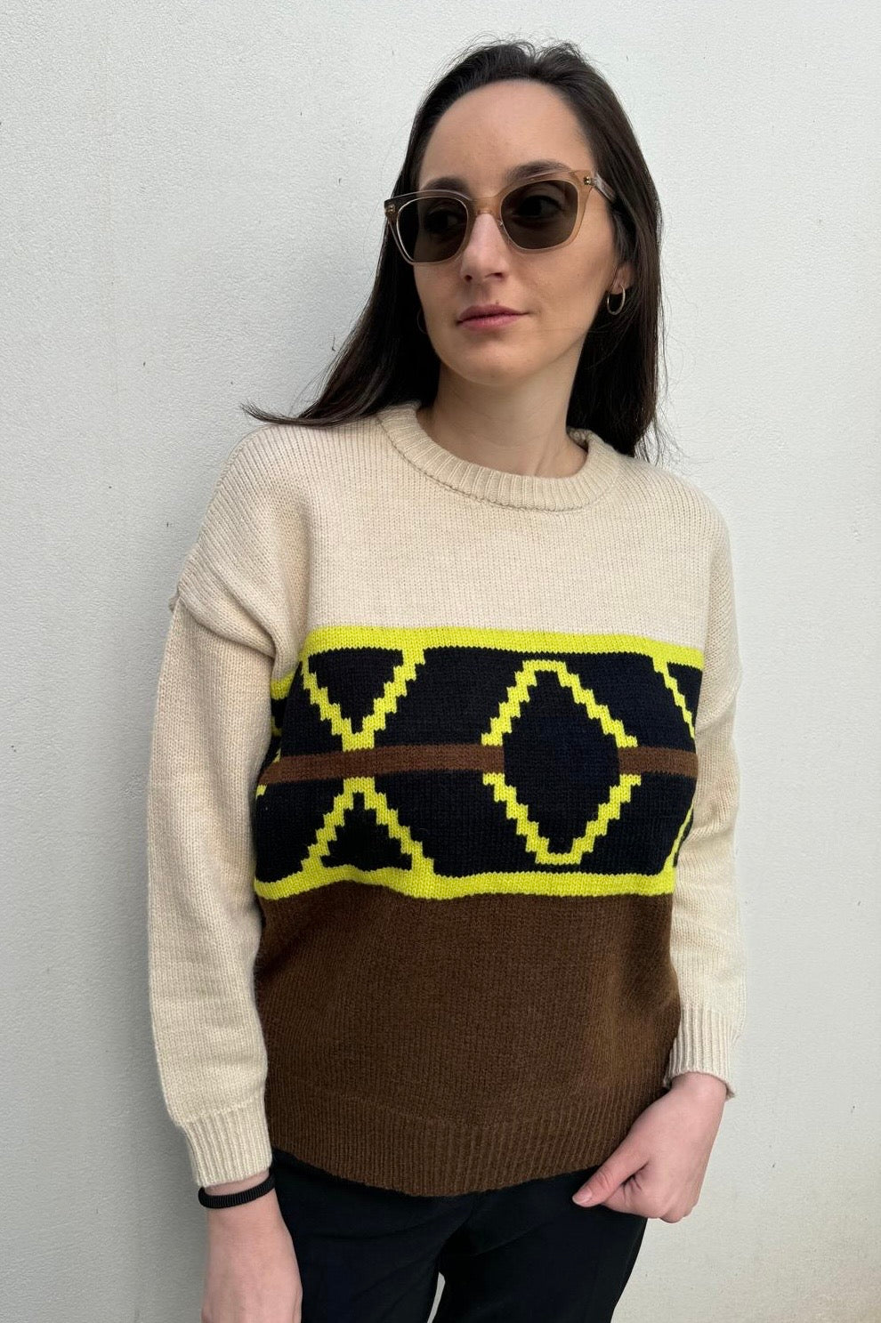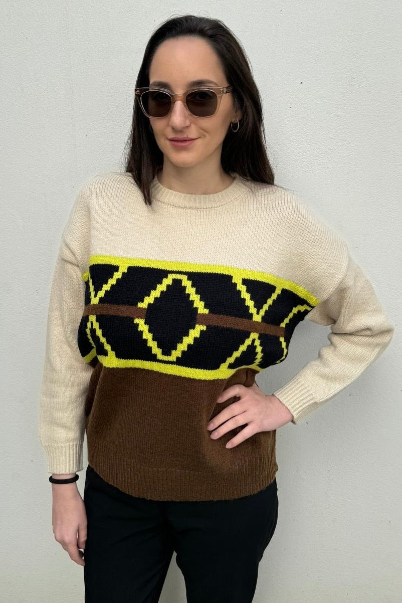 סריג עבה ומחמם בגזרה ישרה, בטקסטורת פסים, עם צווארון גבוה