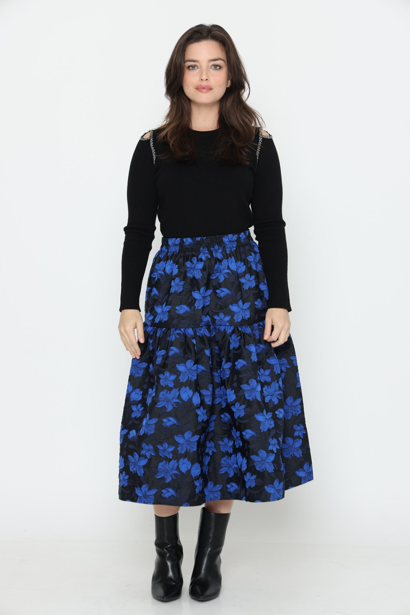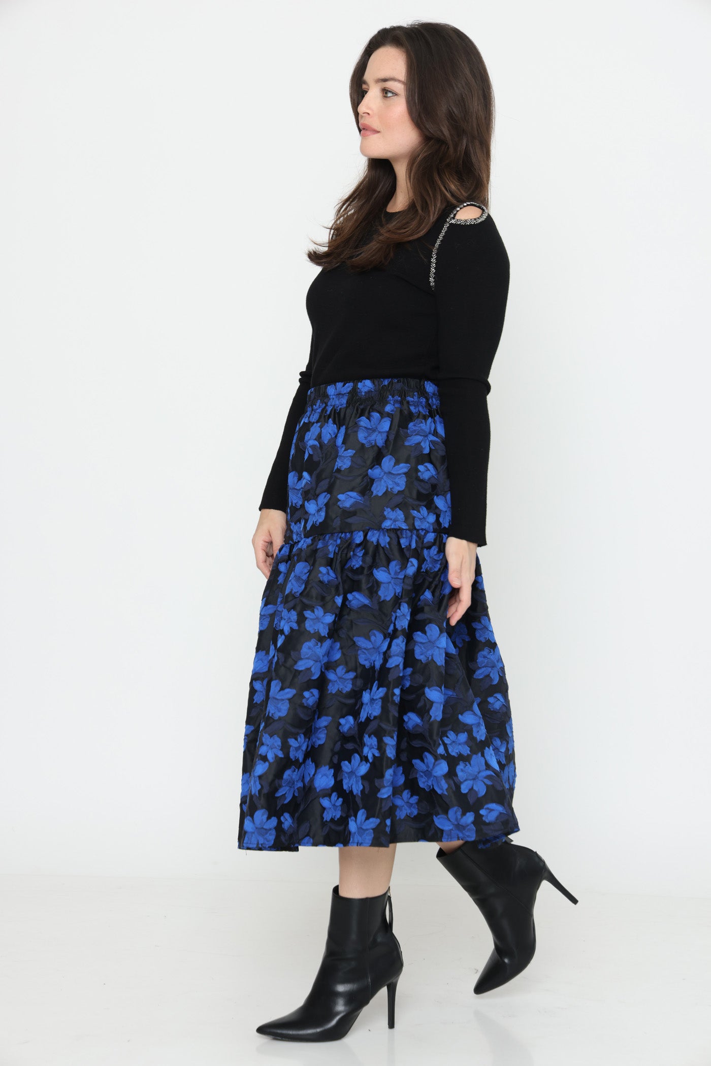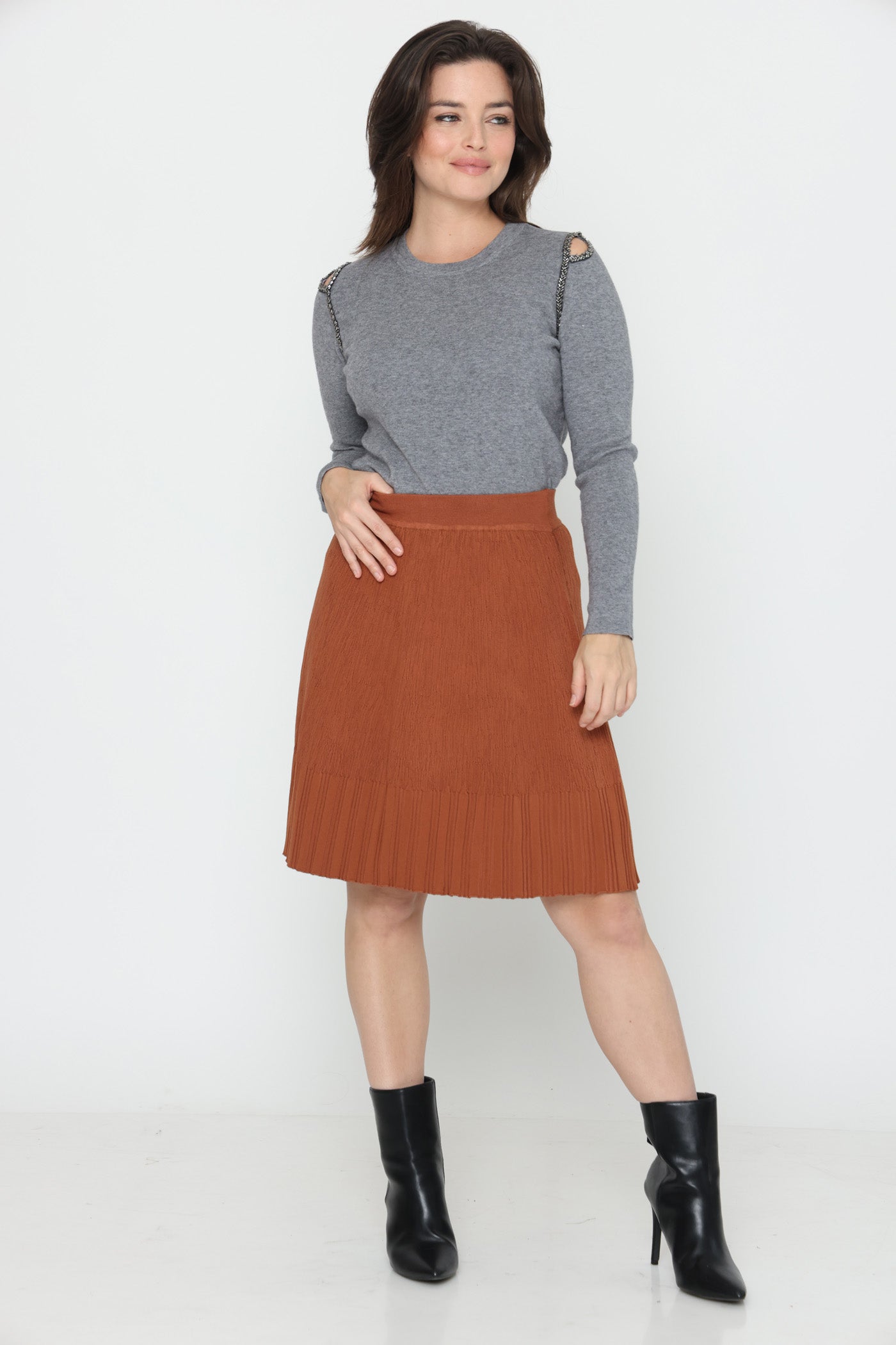 סריג דק ונעים בגזרה צמודה, אלסטי, בשילוב חרוזים ופתחים בכתפיים.