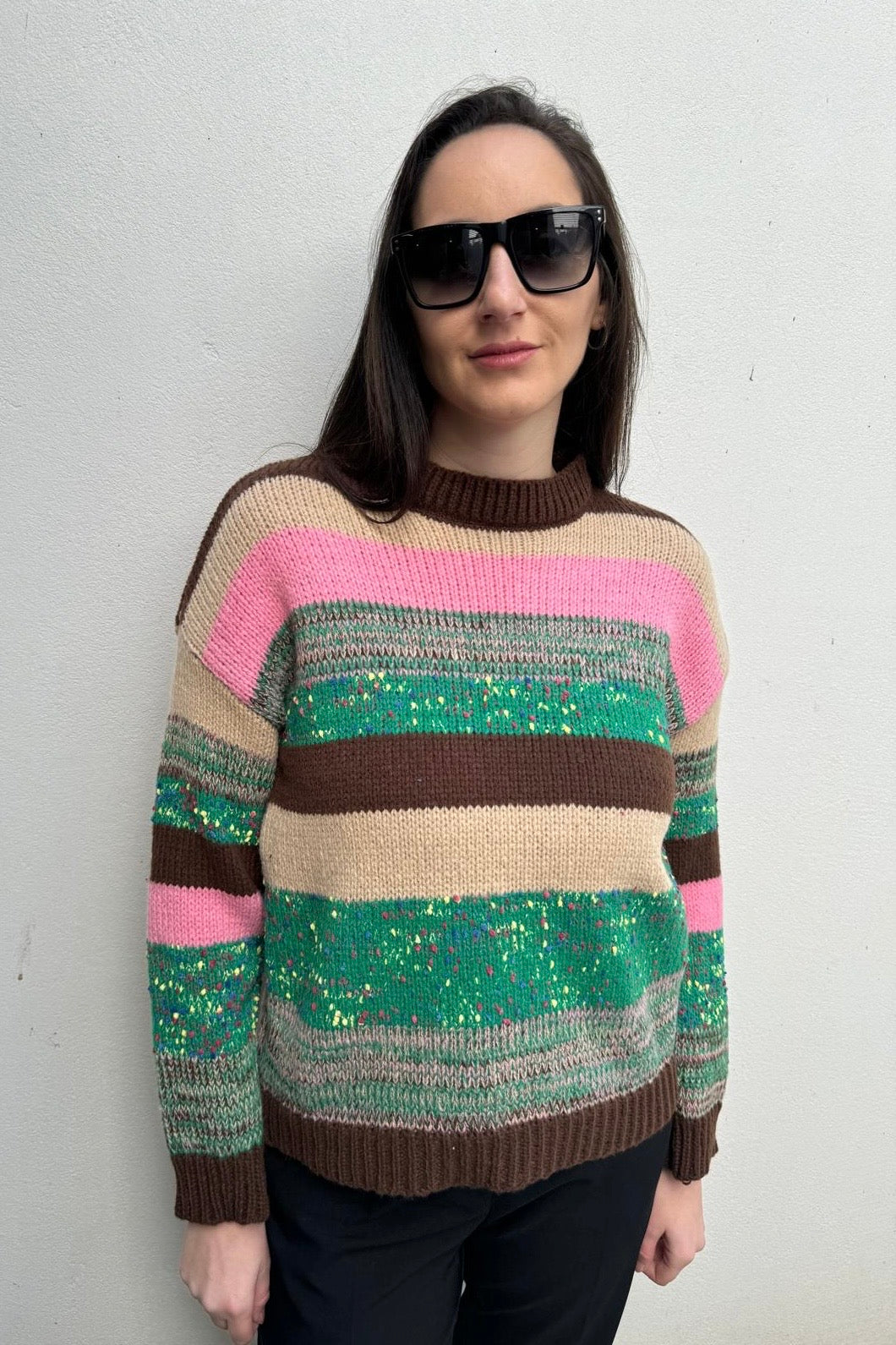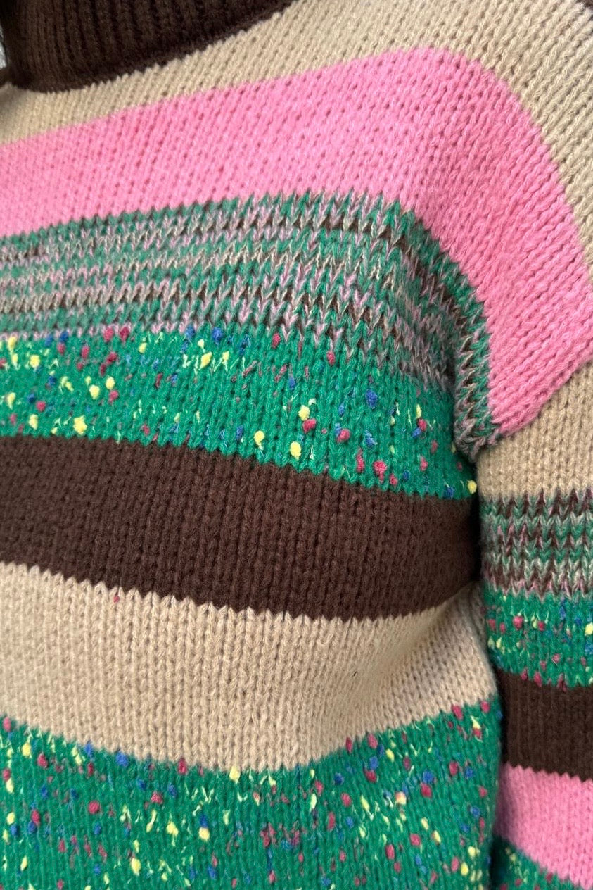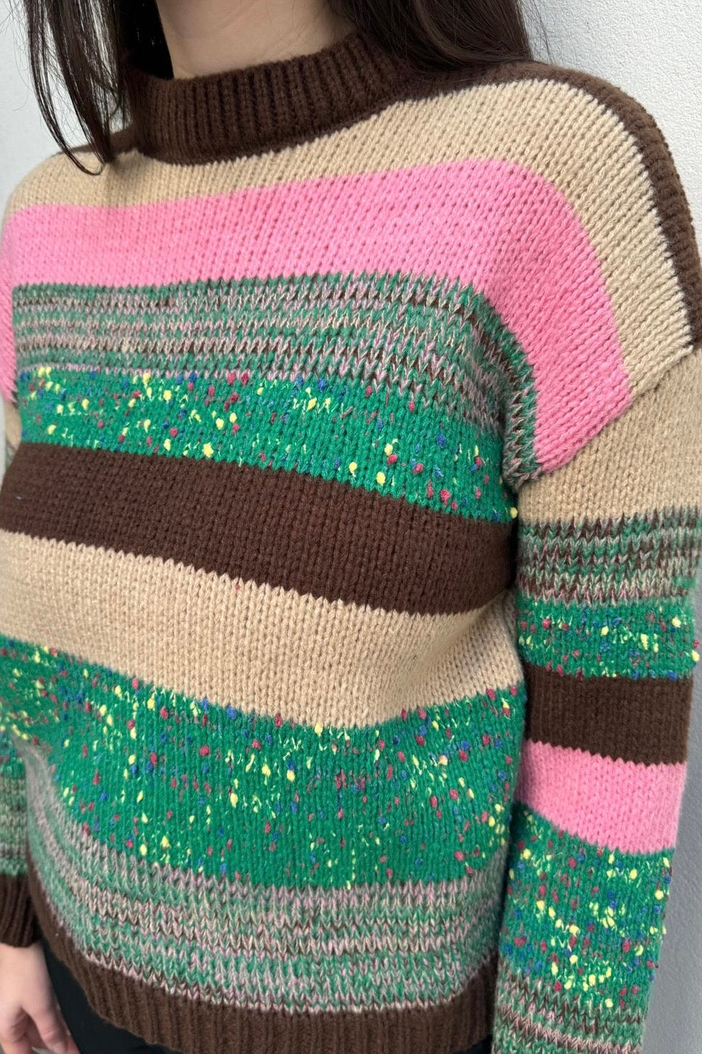 סריג צמר עבה ונעים בטקסטורת פסי צבע עבים.