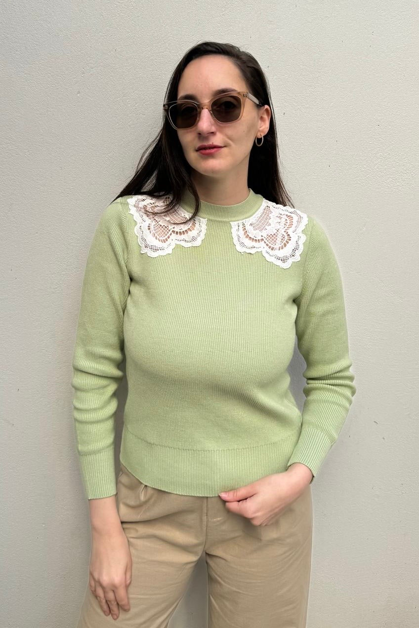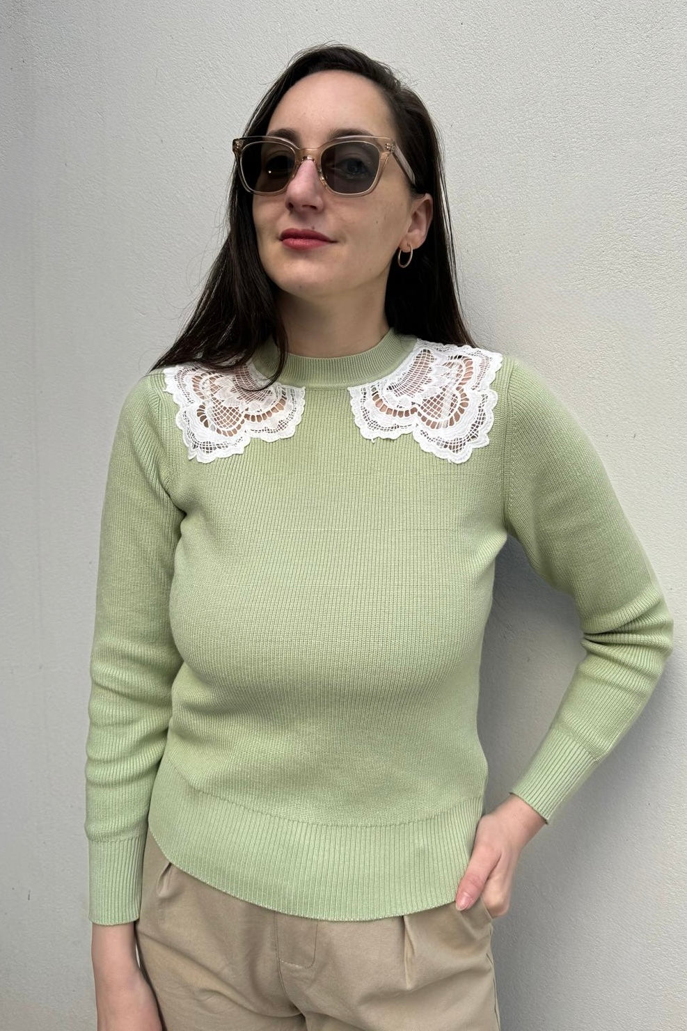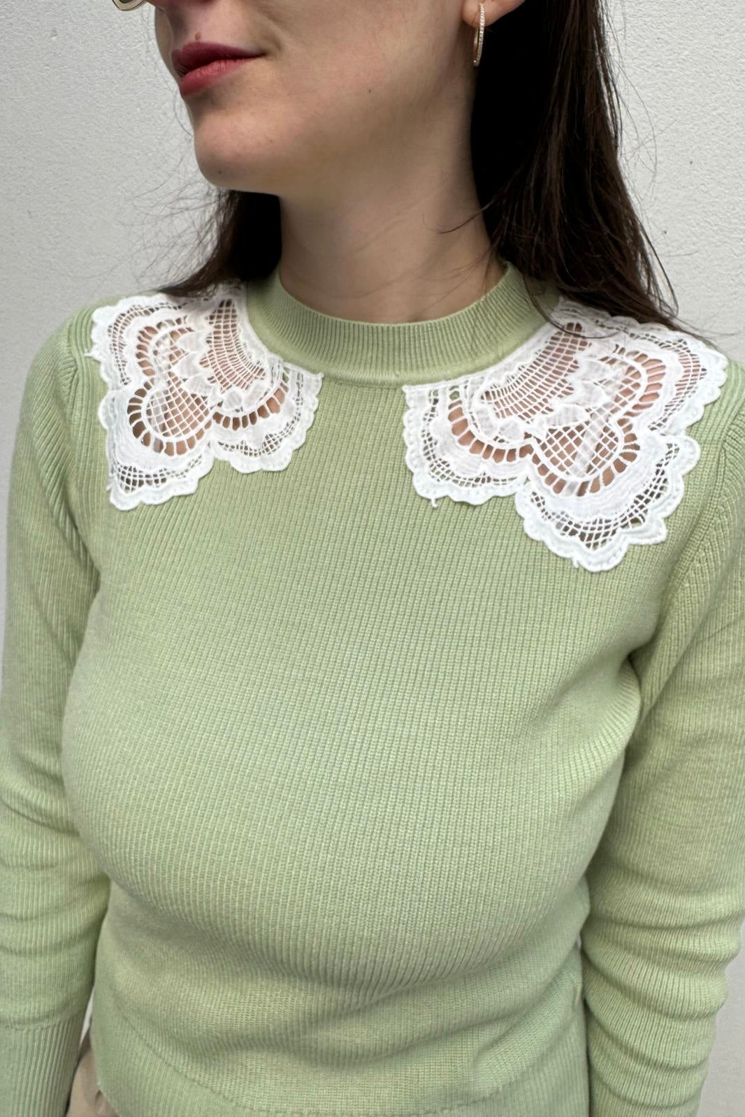 סריג עבה ונעים בגזרה צמודה, בשילוב תחרות בצווארון
