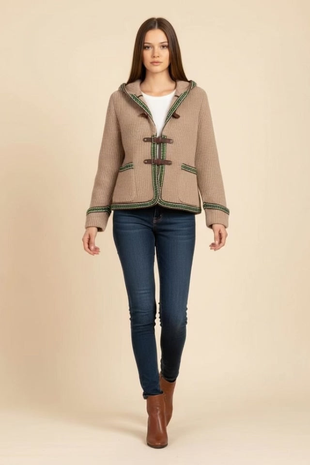 ג׳קט סריג מחויט עם צווארון בולט ואבזמים לסגירה. ONE SIZE (מתאים עד למידה 42)