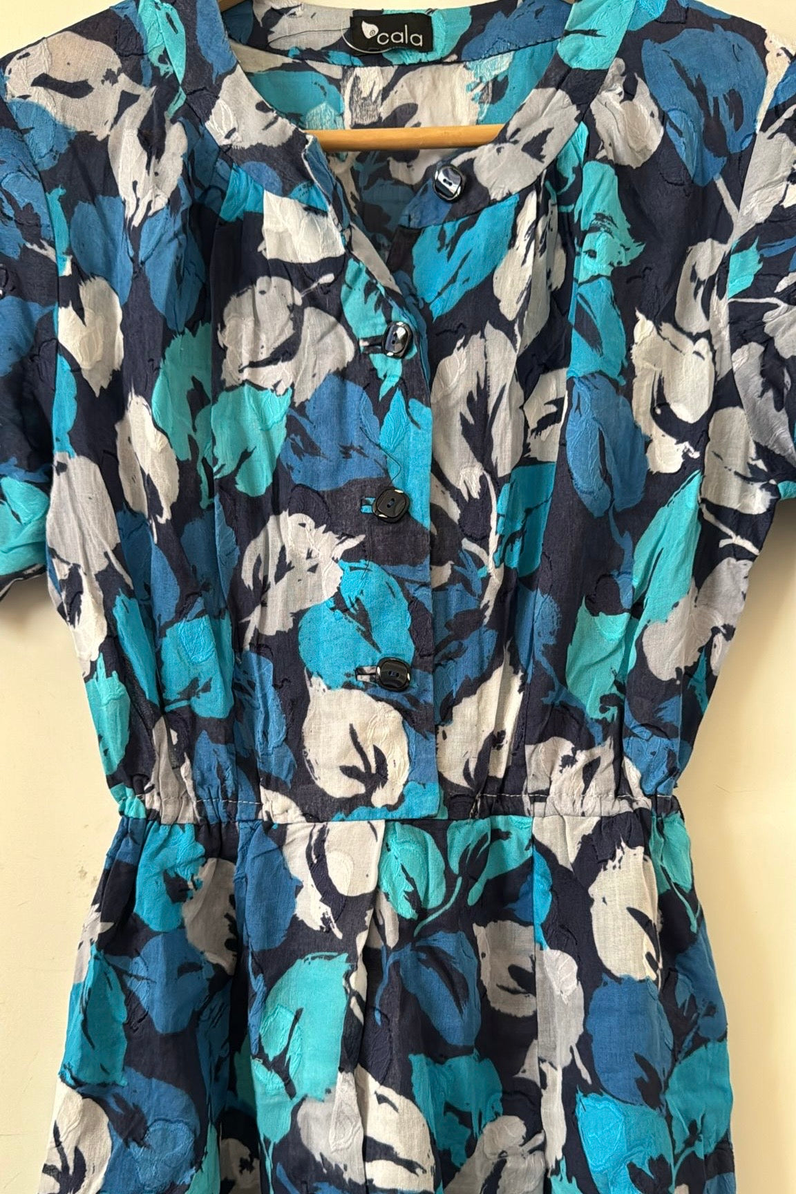 שמלת וינטג' צפיפות עלים בגווני כחול
