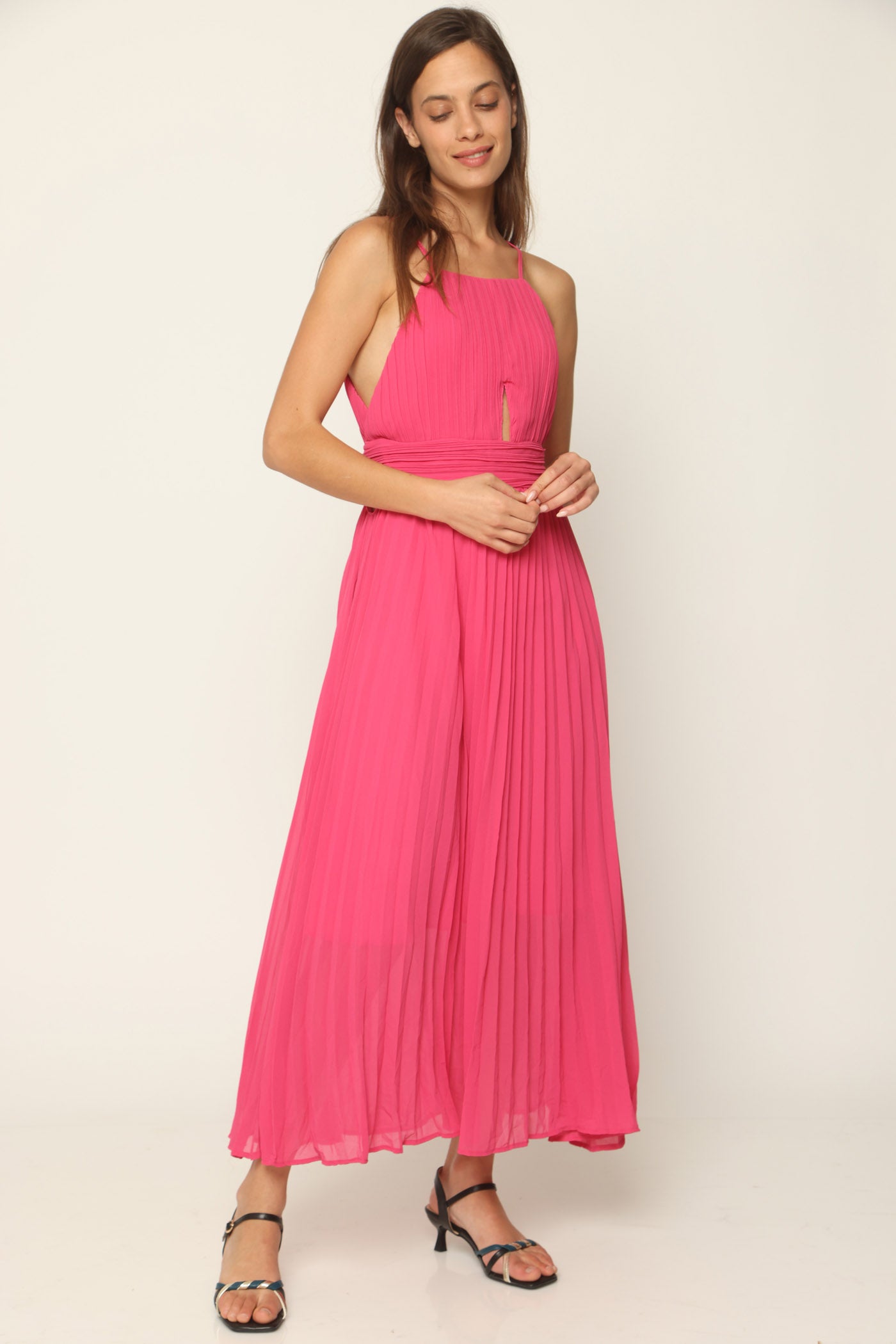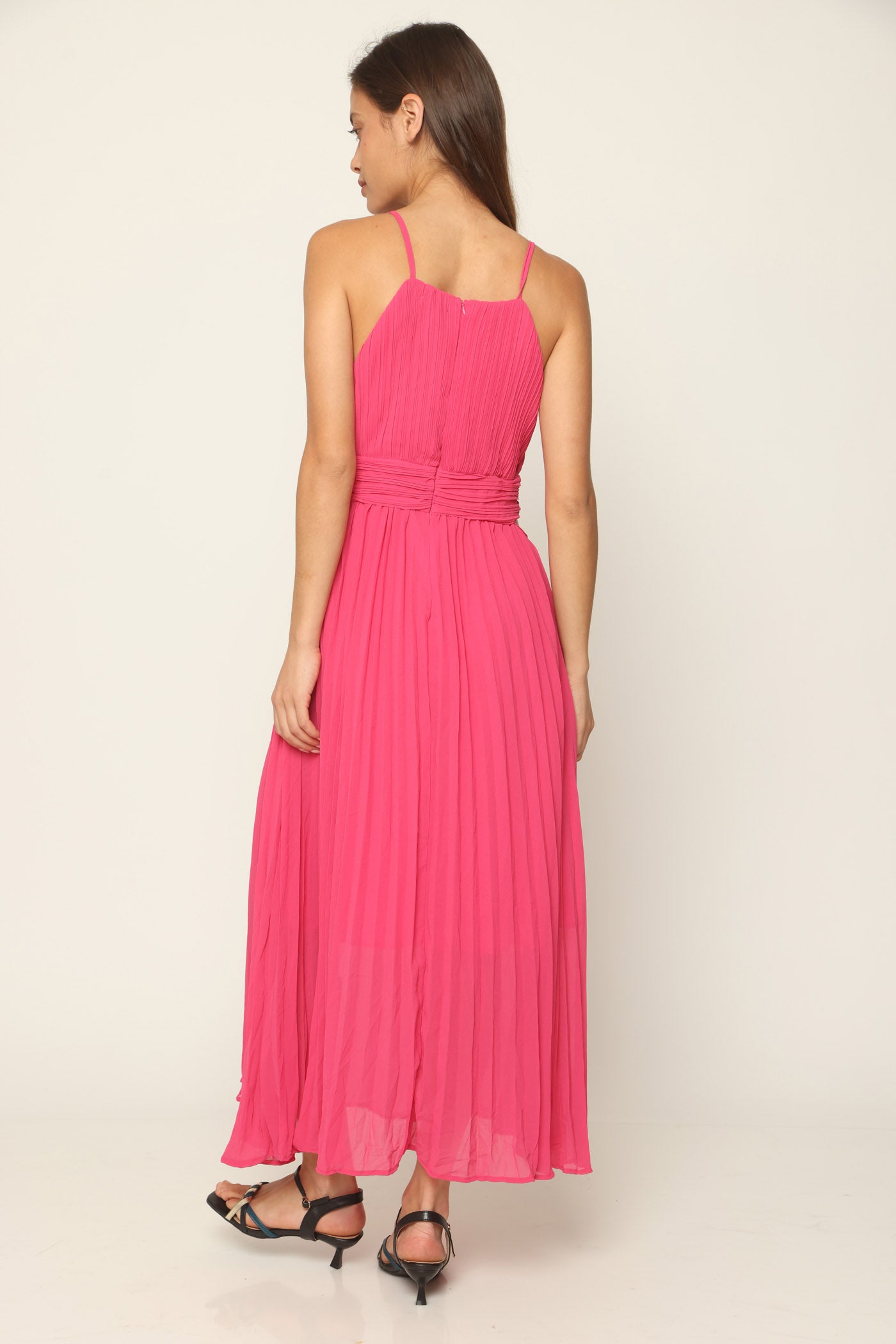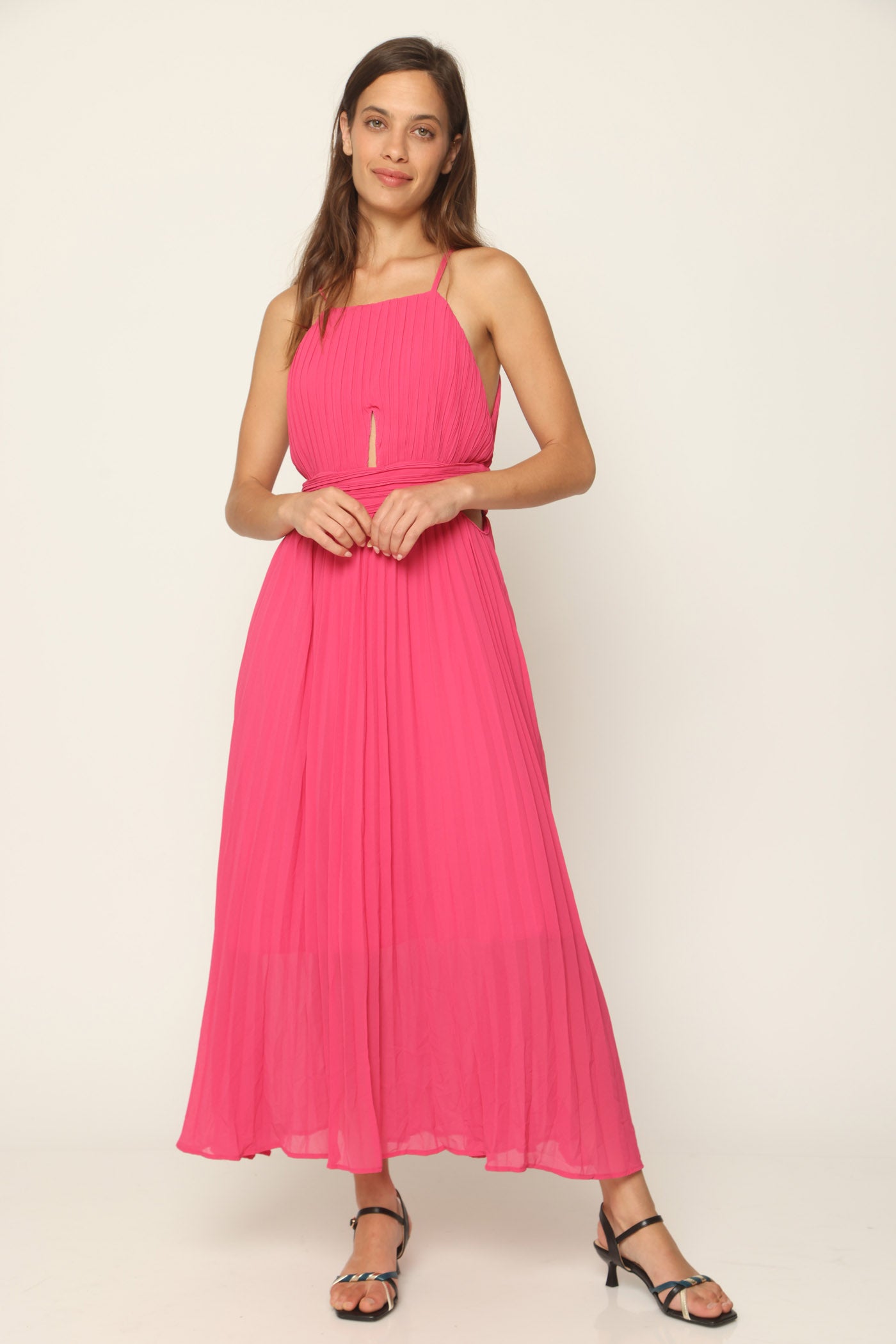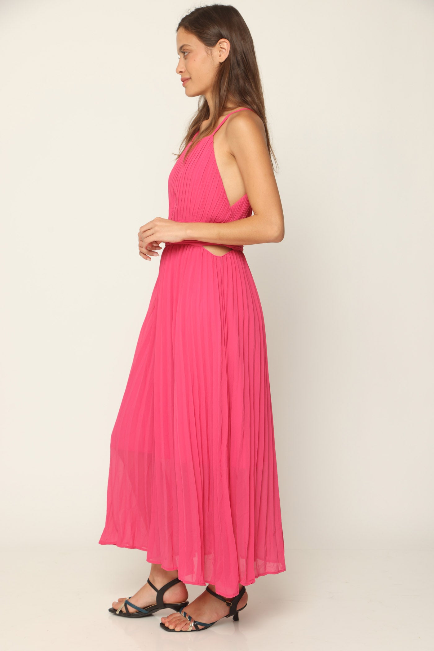 שמלת ערב באורך מקסי, חגיגית ומרשימה, בשילוב פתח מרכזי ופתחים צדיים.